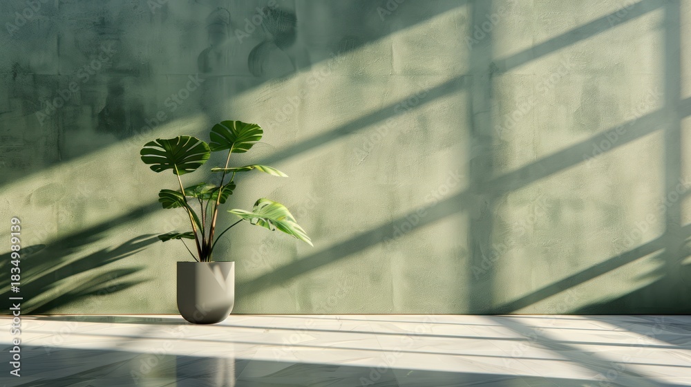 Minimalist Green Plant In White Pot On Sunlit Wallpaper Mural - Decorly Solutions | Decorly Solutions