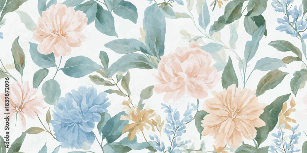 Watercolor Floral Seamless Pattern Delicate Blooms and Lush Greenery, floral pattern, flower background