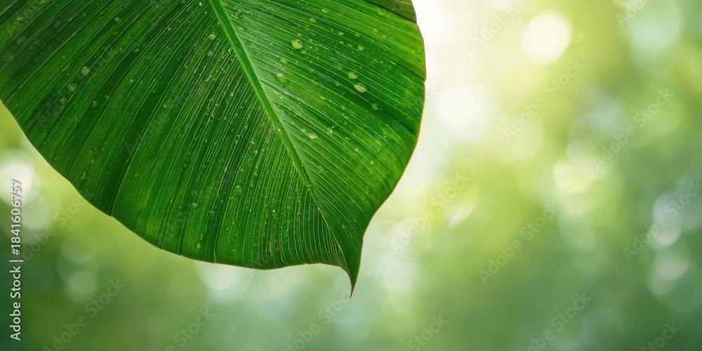 Vivid Green Tropical Palm Leaf With Water Droplets Wallpaper Mural - Decorly Solutions | Decorly Solutions