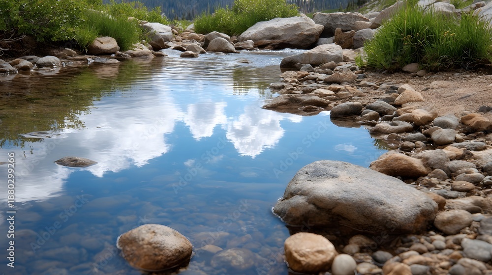 Clear Brook Reflecting Blue Sky And Clouds Over Wallpaper Mural - Decorly Solutions | Decorly Solutions