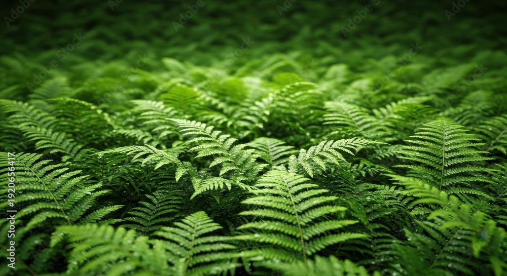Lush Green Fern Fronds Covering Forest Floor in Natural Light