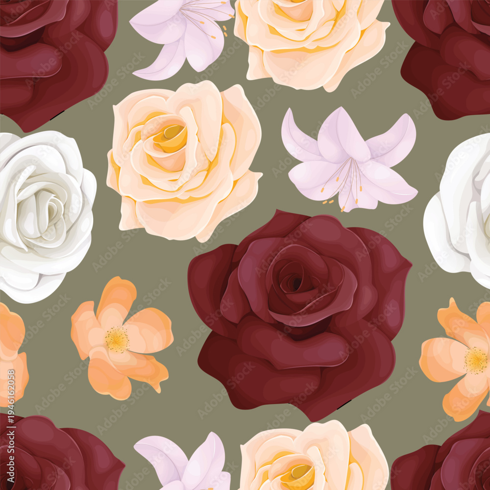 Beautiful Hand Drawn Watercolor Floral Seamless Pattern Wallpaper Mural - Decorly Solutions | Decorly Solutions