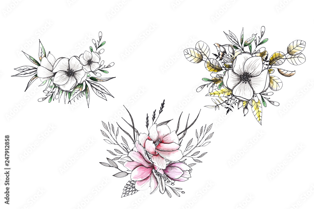 Floral Watercolor And Sketching Wedding Handpainted Bouquets With Wallpaper Mural - Decorly Solutions | Decorly Solutions