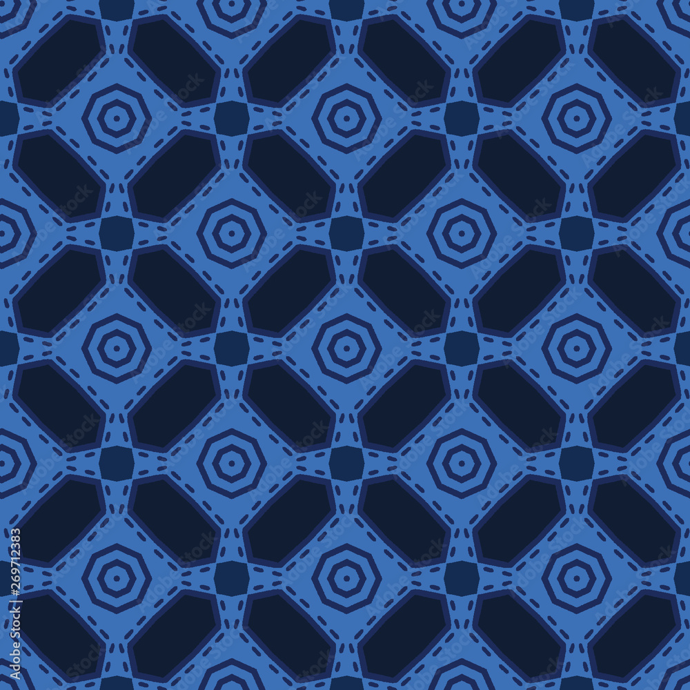 Indigo blue mosaic tile shapes Vector pattern seamless backg Wallpaper