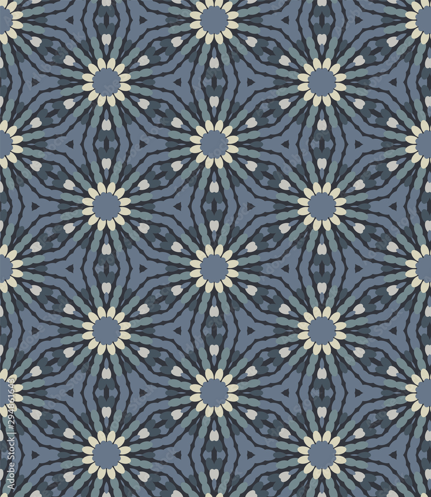 Steel Grey Naive Daisy Bloom Seamless Pattern Hand Wallpaper Mural - Decorly Solutions | Decorly Solutions