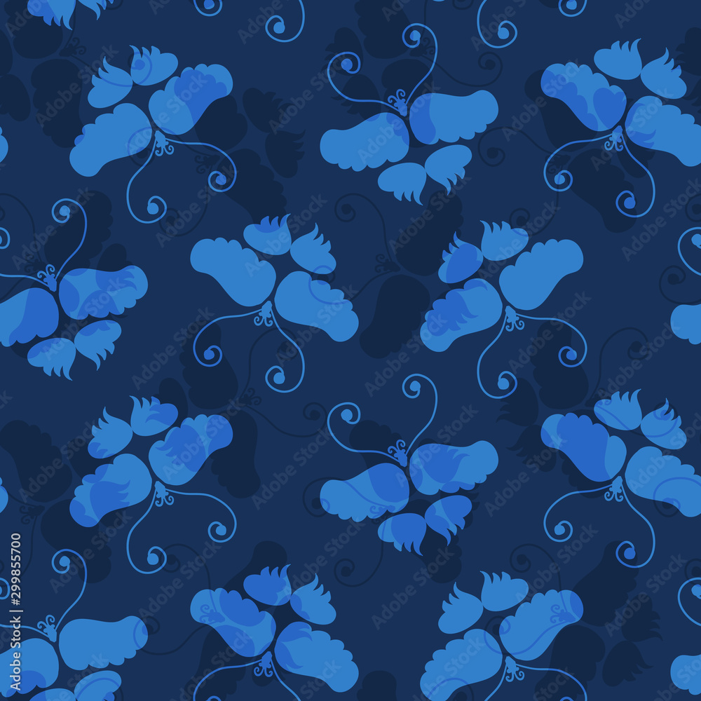 Indigo Blue Butterfly Wax Resist Dye Vector Seamless Wallpaper Mural - Decorly Solutions | Decorly Solutions