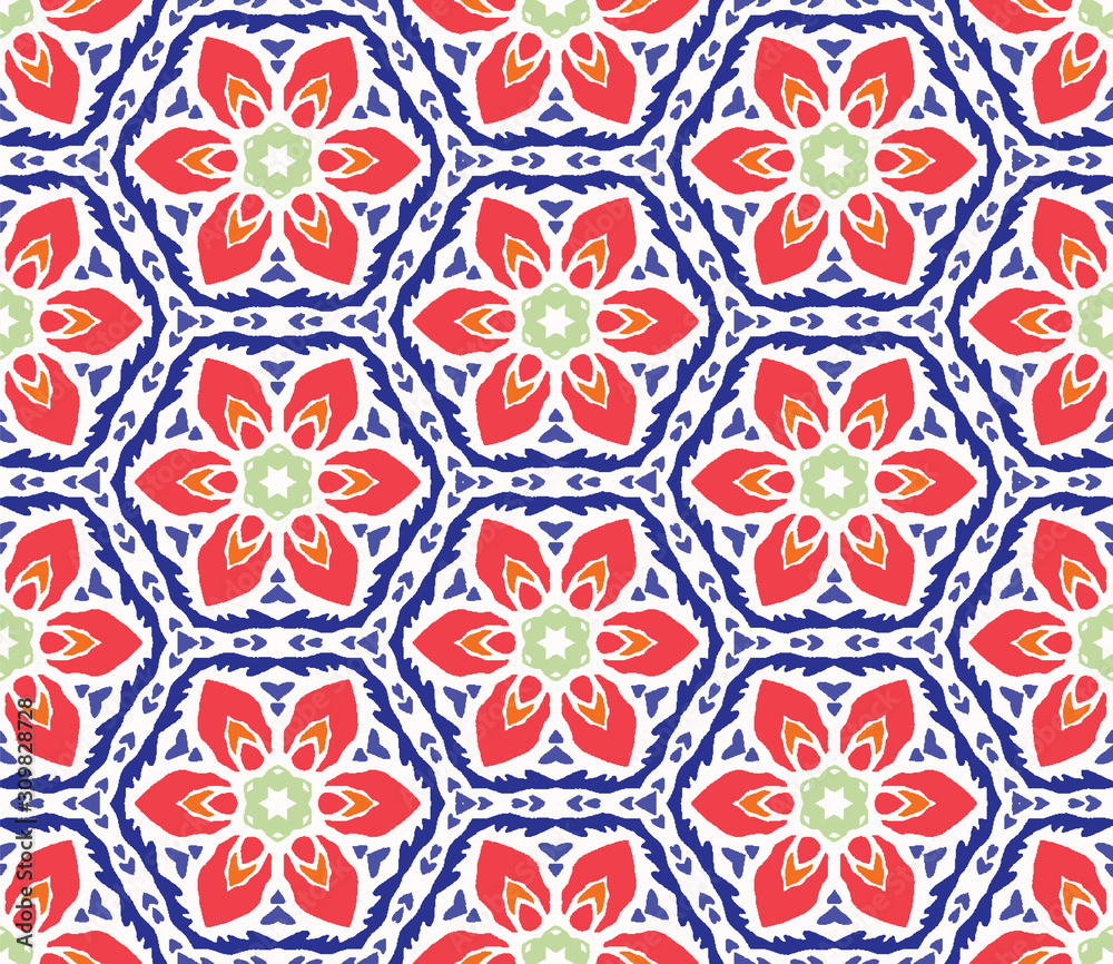 Ikat ethnic textile motif seamless pattern design. Aztec fabric carpet mandala ornaments textile decorations wallpaper. Tribal boho native turkey traditional embroidery vector background