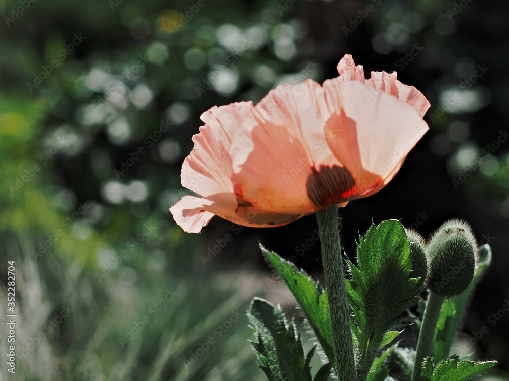 Large pink poppies in the spring garden Wallpaper