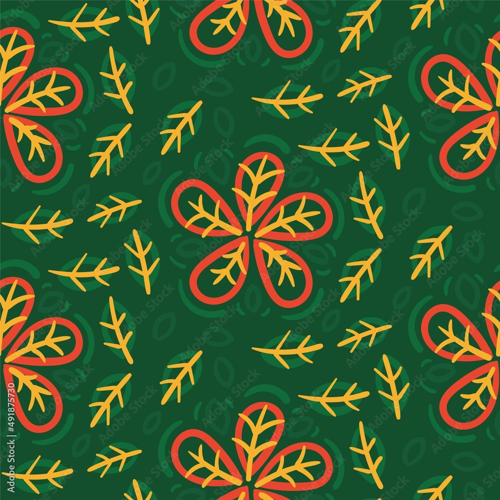 Seamless pattern green red flower creative design background Wallpaper