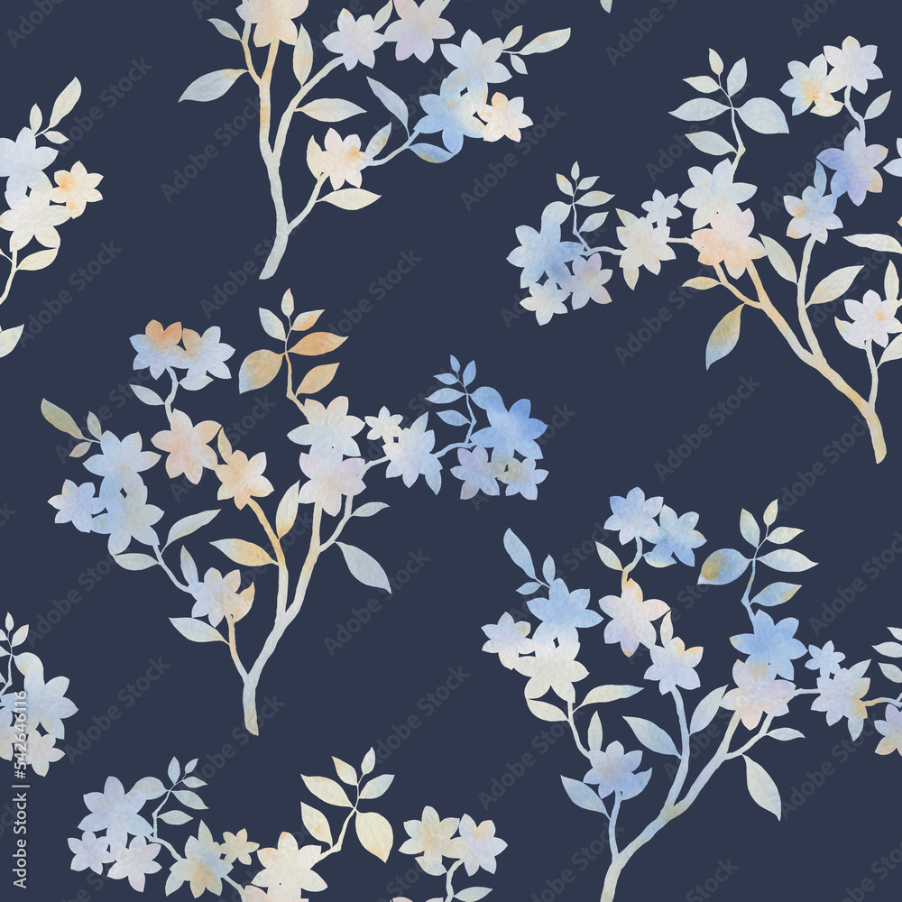 Abstract Botanical Pattern Branch With Leaves And Flowers Wallpaper Mural - Decorly Solutions | Decorly Solutions