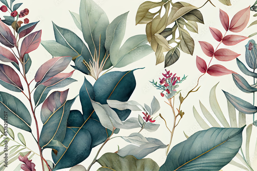 Botanical Watercolor Wallpaper Pattern Generative Ai Wallpaper Mural - Decorly Solutions | Decorly Solutions