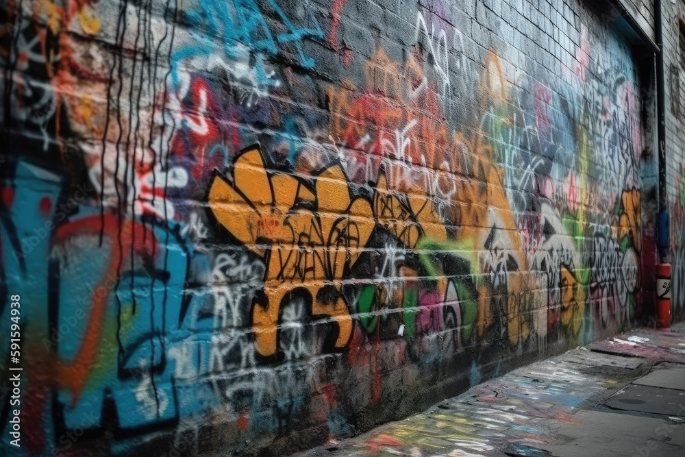 creative graffiti wall in modern colors created with Generative AI technology