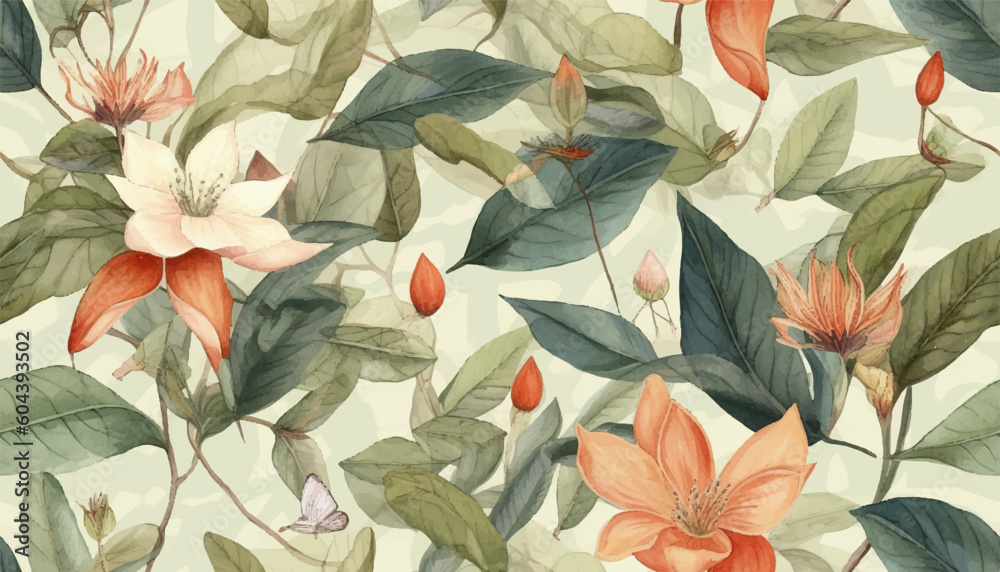 Vintage Botanical Wallpaper Seamless Pattern Floral Abstract Print Wallpaper Mural - Decorly Solutions | Decorly Solutions