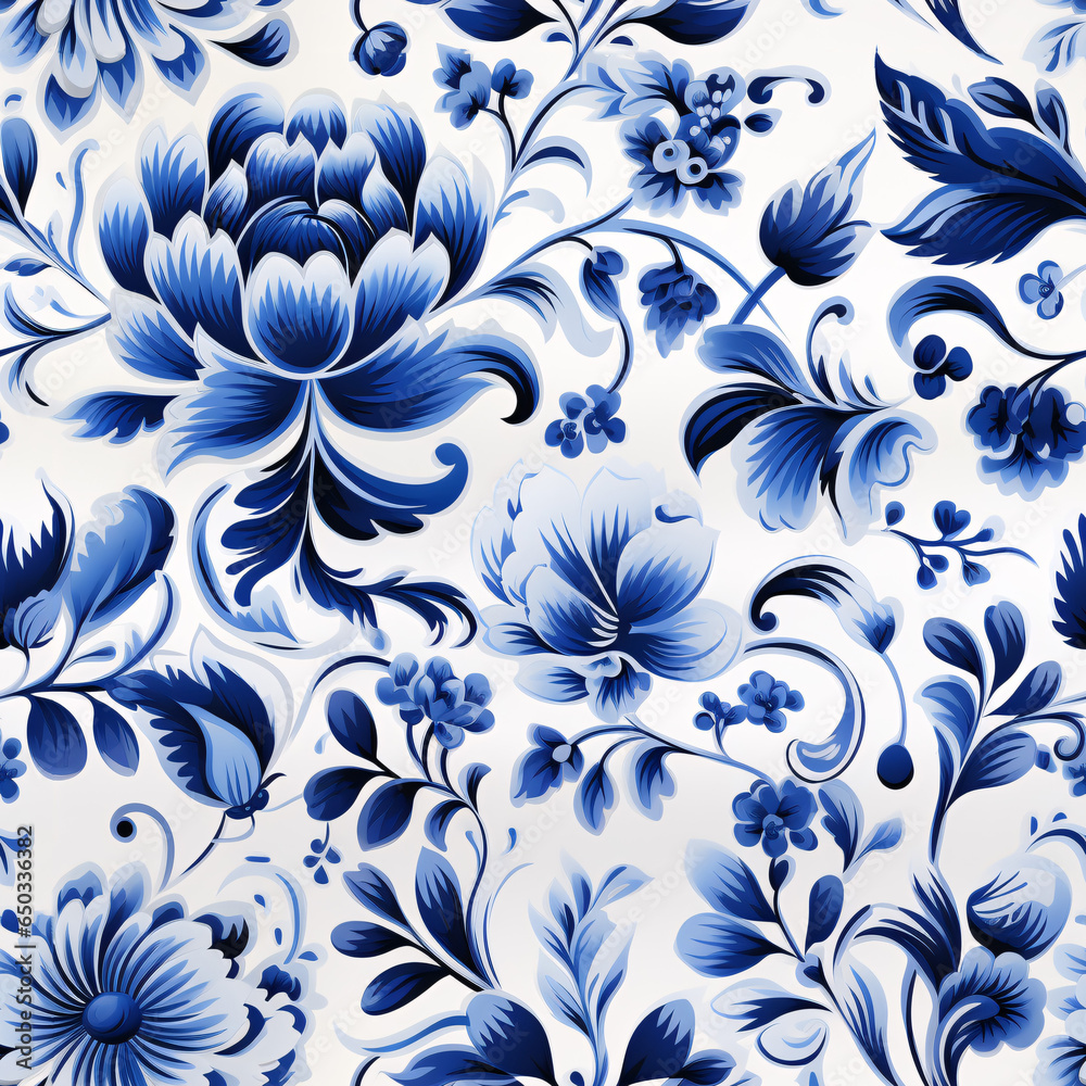 Seamless Dutch-inspired Watercolor Gouache Pattern In Blue Perfect Wallpaper Mural - Decorly Solutions | Decorly Solutions