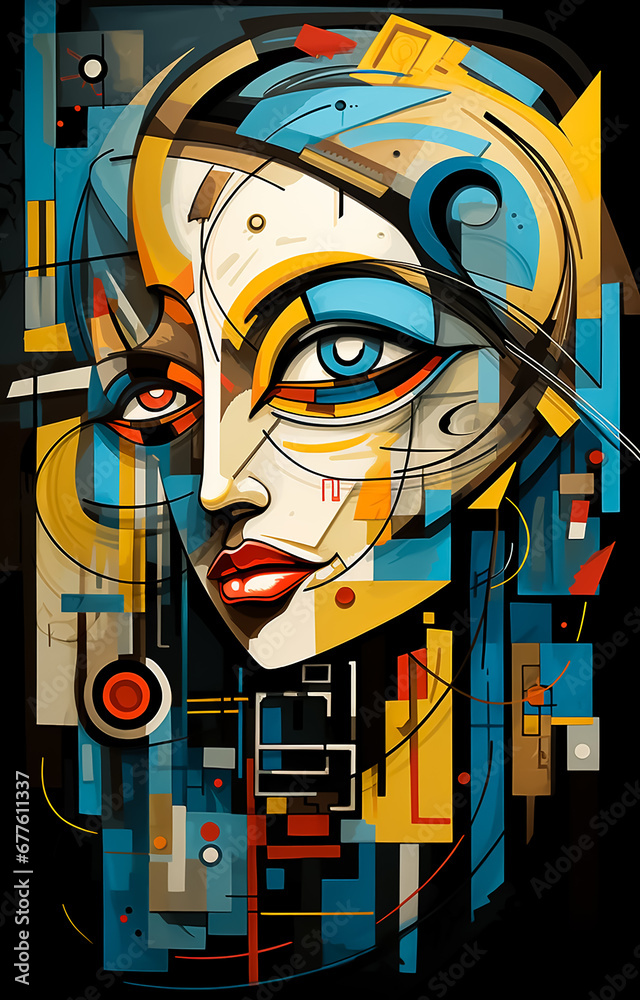 Girl Portrait In Style Of Cubism Art Perfect Wallpaper Mural - Decorly Solutions | Decorly Solutions