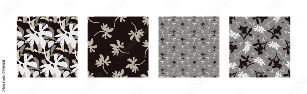Masculine vector floral pattern with organic botanical shapes. Modern bold black white flower print, design in neutral scandi style.