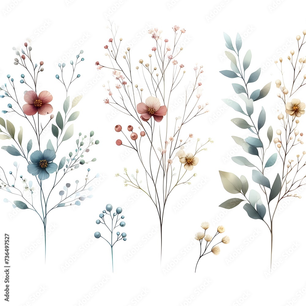 Small Floral Arrangements In Watercolor Wallpaper Mural - Decorly Solutions | Decorly Solutions