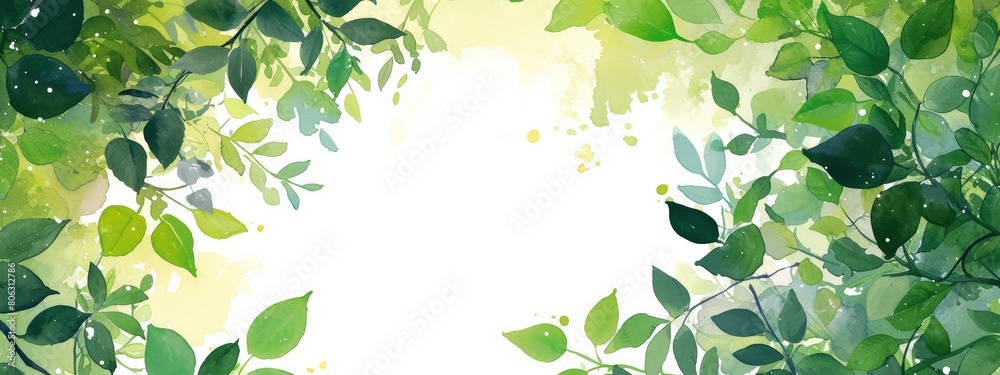 Watercolor spring green leaves background Wallpaper