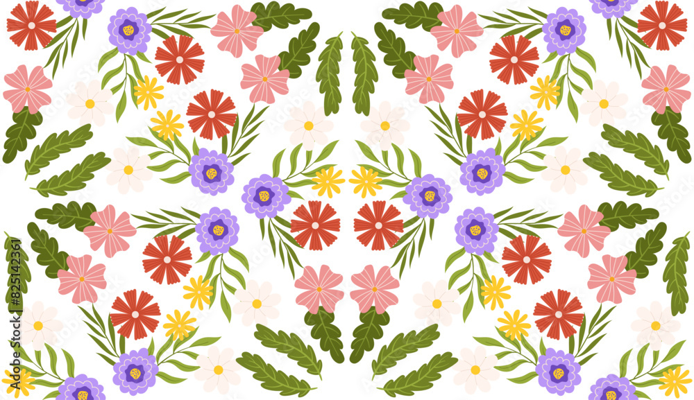 Seamless Pattern With Floral Elements Kaleidoscope Effect Botanical Wallpaper Mural - Decorly Solutions | Decorly Solutions