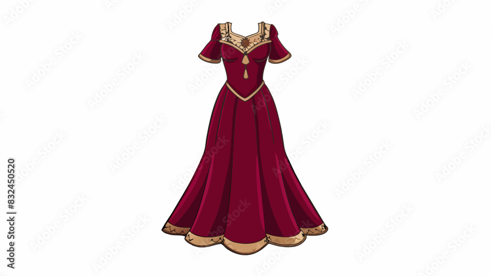 The elegant dress was made of flowing chiffon its vibrant purple color catching the eye. The intricate lace trim on the bodice and the delicate. Cartoon Vector.