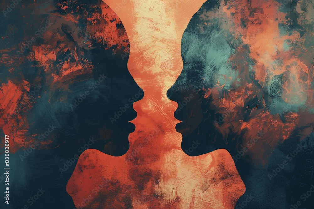 Two Silhouetted Heads In Profile One Listening Attentively Wallpaper Mural - Decorly Solutions | Decorly Solutions