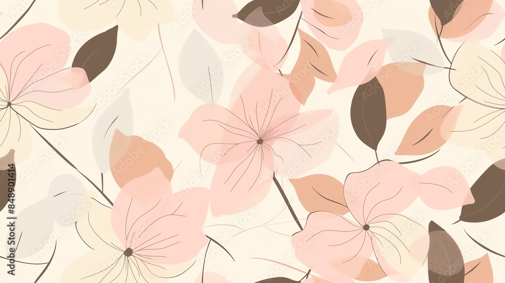 Soft Pastel Light Pink Cream And Brown Flora Wallpaper Mural - Decorly Solutions | Decorly Solutions