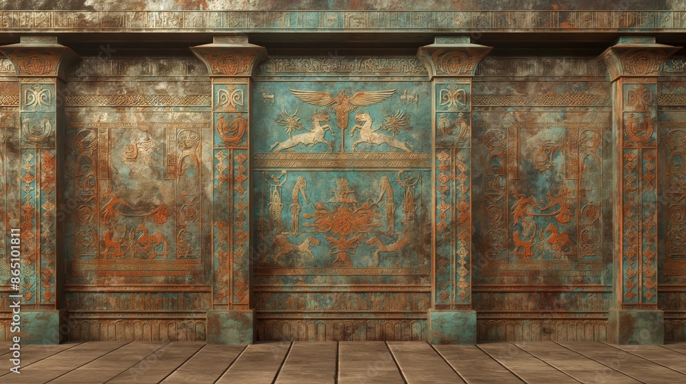 An ancient Egyptian wall with intricate paintings and pillar Wallpaper