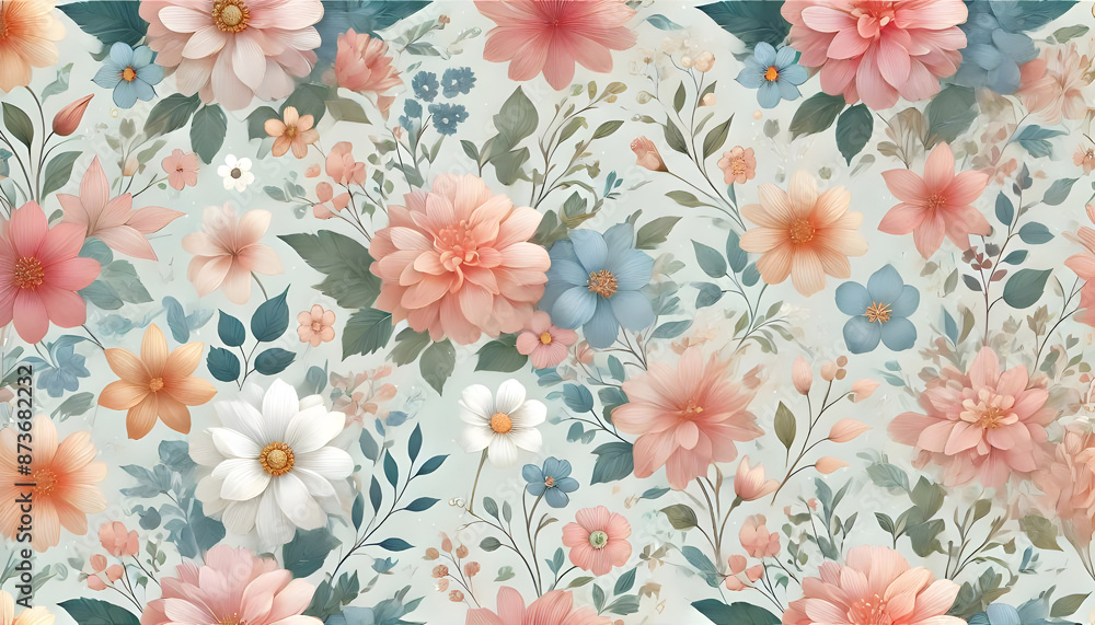 A Seamless Floral Pattern With Various Pastel-colored Flowers Wallpaper Mural - Decorly Solutions | Decorly Solutions