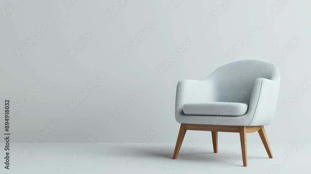 Elegant 3D White Wingback Armchair with Wooden Feet on Clean Pastel Background, Ideal for Advertisement, Poster, and Web Banner