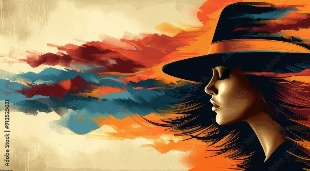 Vibrant Abstract Portrait of a Woman Wearing a Hat with Colorful Background