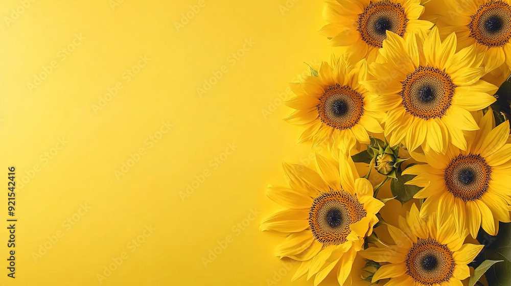 Bright Yellow Background With Sunflowers On The Right Wallpaper Mural - Decorly Solutions | Decorly Solutions