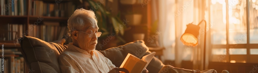 Minimalist Elderly Person Reading Single Lamp Soft Light Wallpaper Mural - Decorly Solutions | Decorly Solutions