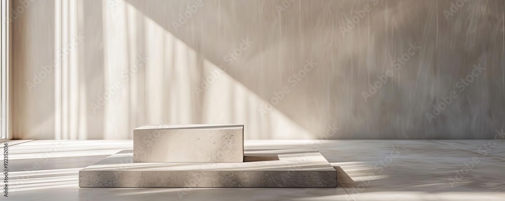 Minimalist Beige Concrete Display Steps With Branch Shadow