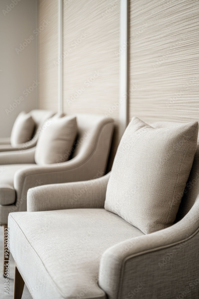 Contemporary Waiting Area With Plush Seating And Calming Wallpaper Mural - Decorly Solutions | Decorly Solutions