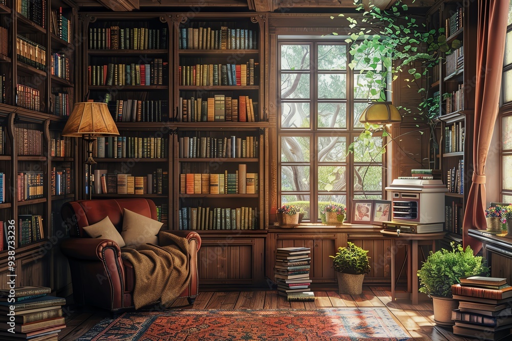Cozy Home Library With A Classic Armchair Wooden Wallpaper Mural - Decorly Solutions | Decorly Solutions