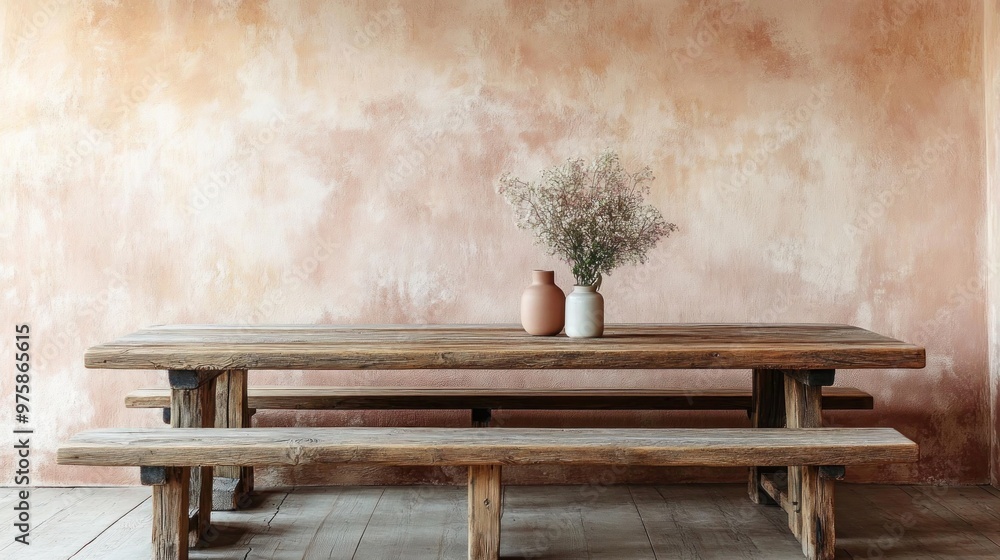 A Rustic Wooden Dining Table With Bench Seating Wallpaper Mural - Decorly Solutions | Decorly Solutions