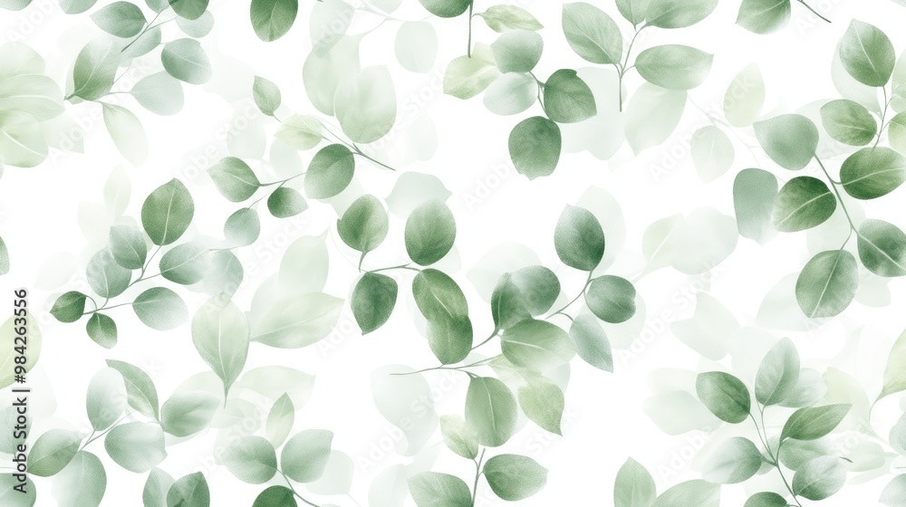 Eucalyptus leaf seamless pattern in watercolor featuring hand painted botanical illustrations on a clean white backdrop
